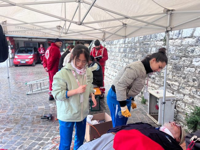 Si sono appena concluse le Olimpiadi di Primo Soccorso, evento che a livello nazionale ha coinvolto numerose scuole superiori per trasmettere alle nuove generazioni la cultura del soccorso e i valori fondanti di Croce Rossa. Nelle Marche il progetto ha coinvolto 19 istituti superiori per un totale di 13 squadre che a Fossombrone si sono sfidate in una lunga giornata di competizione. Le due squadre di Ancona, composte da studenti delle classi quarte del Liceo Scientifico Galilei, hanno conquistato il terzo posto generale e il prestigioso Premio Monti, riconoscimento che premia chi ha il migliore approccio all’infortunato. «Un grazie speciale va agli istruttori e simulatori del Comitato di Ancona che hanno formato e preparato al meglio i ragazzi e ai giovani che con entusiasmo li hanno accompagnati sul terreno di gara» sottolinea la Croce Rossa di Ancona.