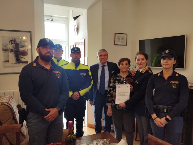 La visita del questore ha notevolmente entusiasmato la simpatica signora che, durante l’incontro, ha raccontato diversi aneddoti a riprova dell’efficacia dei consigli impartiti dalla Polizia di Stato nella prevenzione alle truffe.