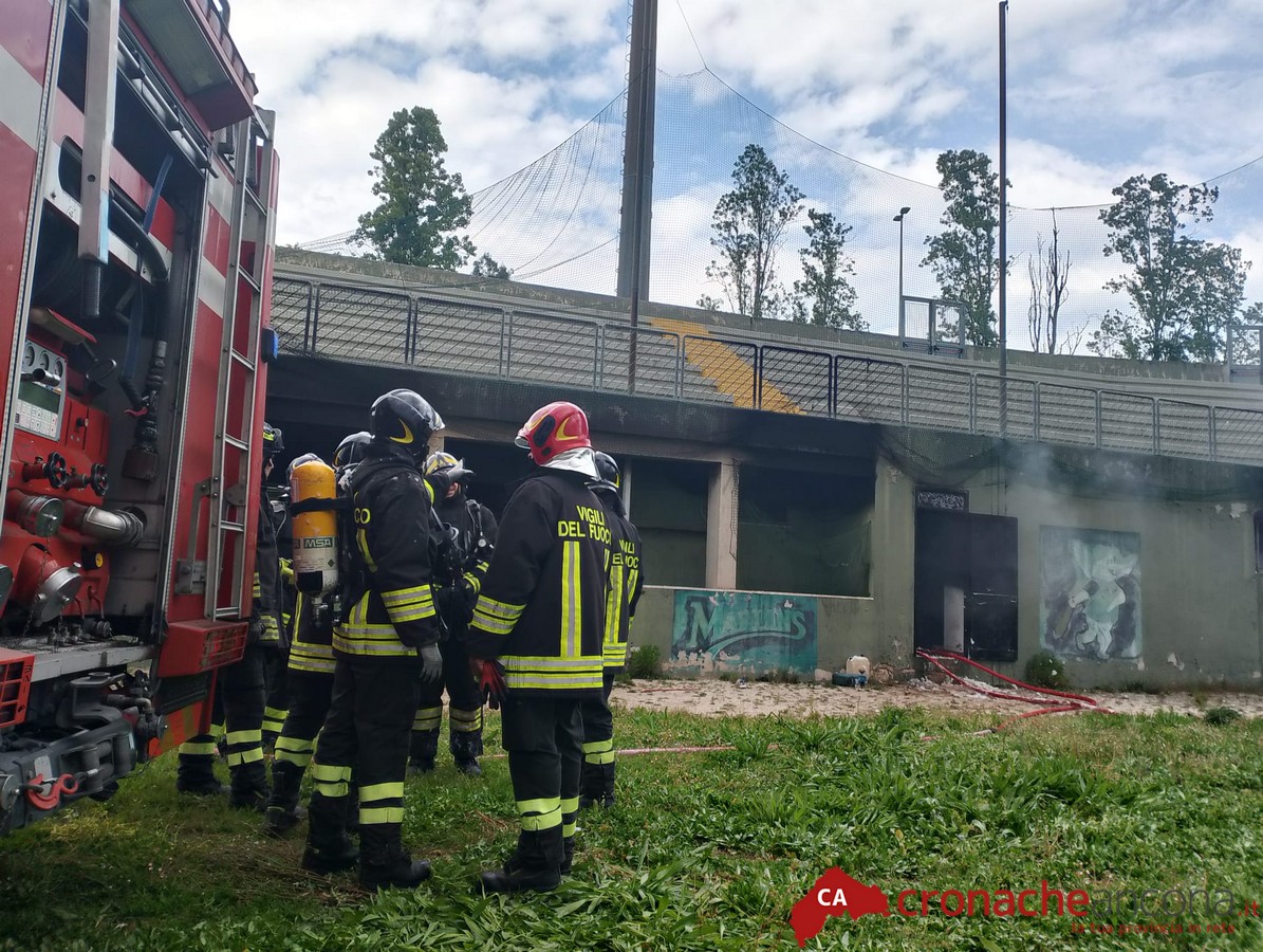 I pompieri hanno lavorato per spegnere le fiamme che si erano sprigionate all’interno degli spogliatoi che, inoltre, sembra fossero chiusi in quel momento.