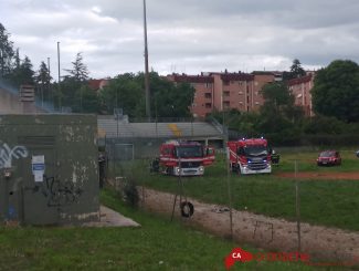 Intervento di vigili del fuoco e polizia nel pomeriggio, al campo da baseball in via Sacripanti, a seguito delle fiamme divampate all’improvviso dall’interno degli spogliatoi.