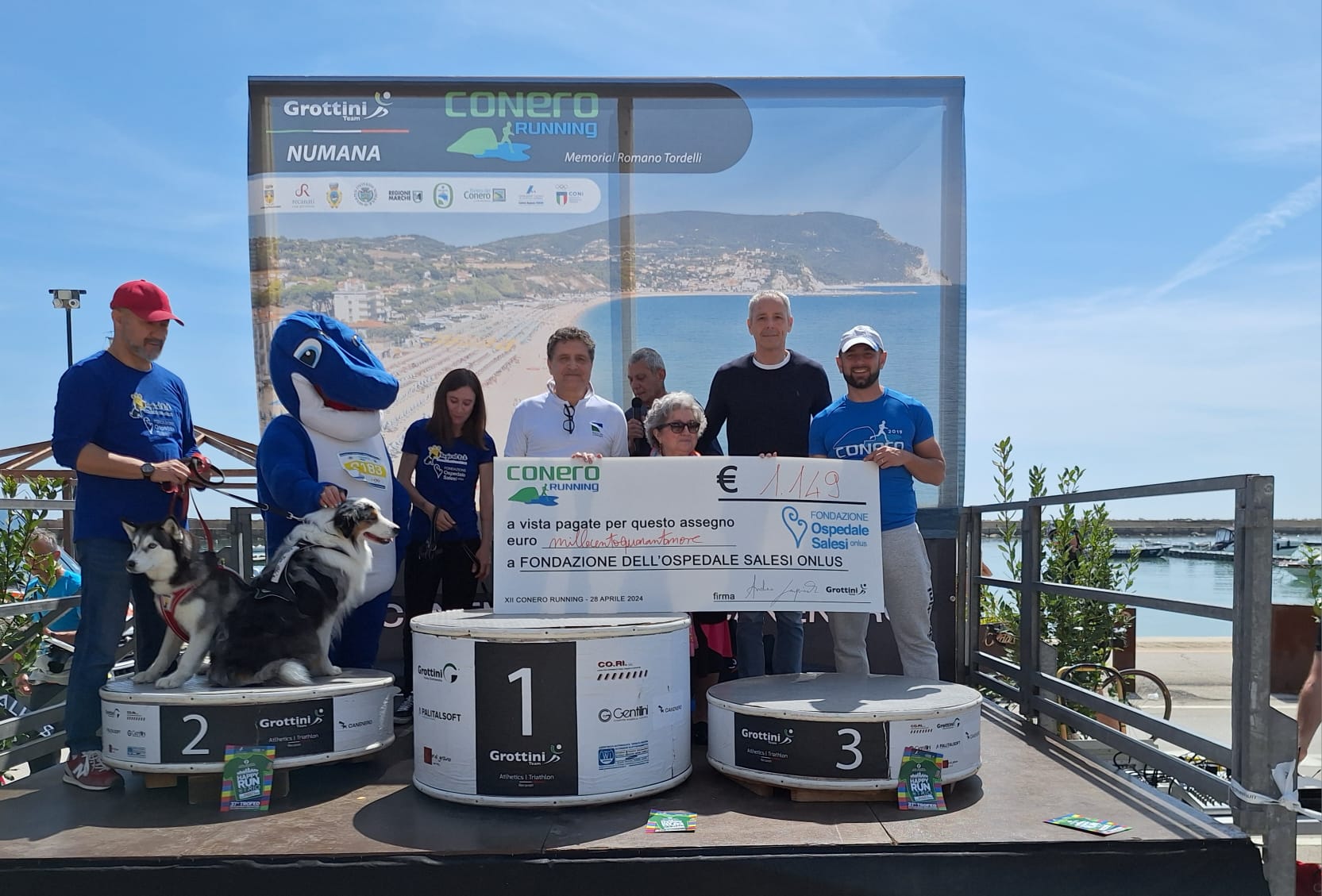 «Una bellissima giornata di sole dopo giorni con tanta pioggia che forse hanno dissuaso alcuni a partecipare ma ci godiamo i tanti fondi raccolti per la Fondazione Salesi i cui progetti meritori necessitano di tutto il nostro sostegno» commenta Andrea Carpineti, vicepresidente del Grottini Team Recanati sul palco delle premiazioni con il sindaco di Numana Gianluigi Tombolini il Presidente del Parco del Conero Luigi Conte e tanti amici a partire da Laura Mazzanti, Direttore della Fondazione Salesi Onlus. Con le sue numerose attività e i progetti contribuisce a sostenere il livello di eccellenza raggiunto dal Dipartimento Materno-Infantile dell’Azienda Ospedaliero Universitaria delle Marche. «Come al solito il ringraziamento va, oltre che a tutto il Grottini Team, anche agli splendidi volontari che mettono a disposizione tempo, impegno ed energie per realizzare un evento di riferimento come questo – aggiunge Carpineti. Grazie speciale al Comune di Numana e alla partnership di Regione Marche, Comuni di Loreto, Recanati e Porto Recanati, Coni Marche, Parco del Conero, Associazione Riviera del Conero e Colli dell’Infinito, Rotary 25-35. Il ringraziamento va anche alle aziende che ci sono vicine e credono nel valore di associare il proprio marchio alla Conero Running».