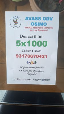 Si sostiene solo ed esclusivamente con il 5×1000 (codice fiscale 93170670 421) e con donazioni private. Al momento i servizi sono espletati con l’impiego delle autovetture private dei volontari. La priorità è quindi quella di acquistare un automezzo per i servizi di accompagnamento anziani, disabili e bisognosi, spiegano il presidente Giuseppe Argentino, con il vice Mario Russo ed il segretario Nino Caruso. Pertanto, Avass, regolarmente riconosciuta a livello nazionale ed iscritta nel Registro unico nazionale del terzo settore, confida che i contribuenti, al deposito della dichiarazione dei redditi possano devolvere, in forma del tutto gratuita, il 5xmille alla associazione. Per ulteriori informazioni o per concordare i dettagli di una donazione, si può contattare il seguente recapito telefonico; 380.1515185 oppure l’indirizzo mail: avass.odv.osimo@gmail.com Le eventuali donazioni, deducibili fiscalmente, potranno essere effettuate: tramite bonifico bancario al seguente Iban: IT 70 I 08549 37490 000000408129 , Bic: ICRAITRRF90, indicando nella causale “Elargizione liberale”; oppure in denaro contante, con rilascio di apposita ricevuta.