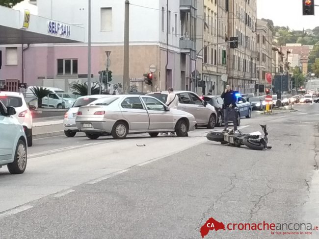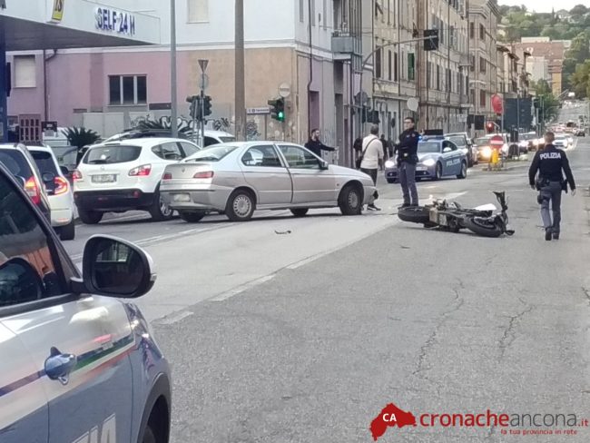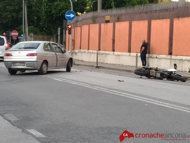 Il giovane è stato trattato dal personale medico e sanitario per poi essere trasportato in sirena al pronto soccorso di Torrette a seguito delle fratture riportate ad una gamba.