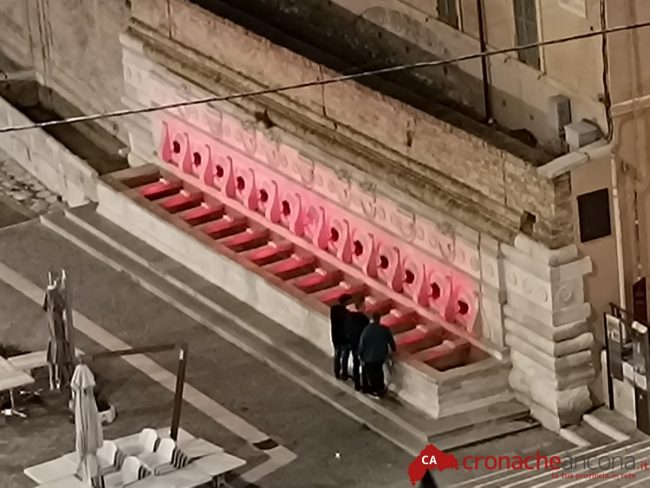 Si è illuminata di rosso la fontana delle 13 Cannelle, in occasione della data dell’8 maggio che ha visto i 160 anni dalla nascita della Croce Rossa.