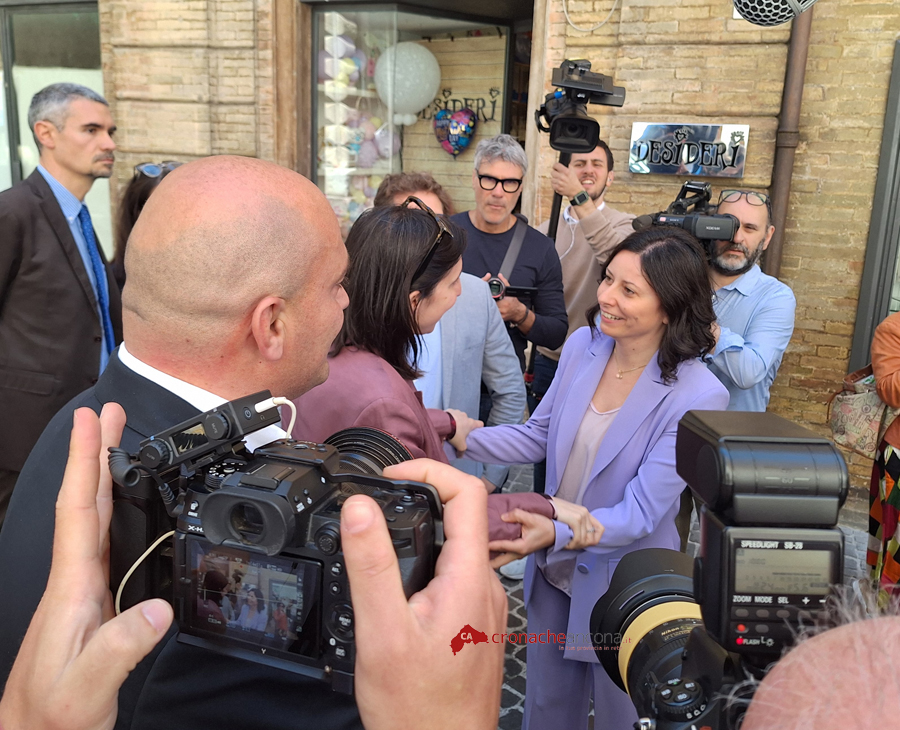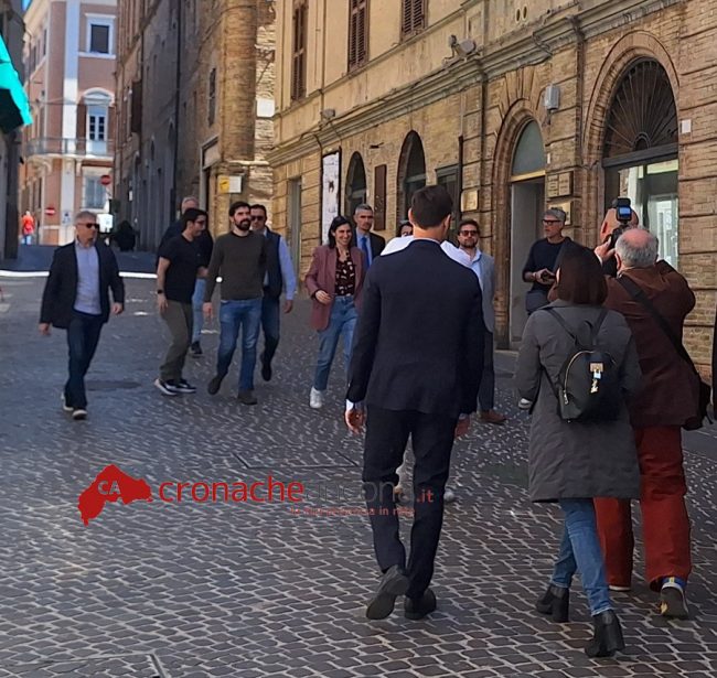Elly Schlein ha iniziato il suo tour nella nostra regione nel primo pomeriggio di oggi proprio dalla città dei ‘senzatesta’ prima di fare tappa anche a Fano e a Pesaro. La segretaria del Pd, deputata e capolista alle Europee per il Centro Italia, è arrivata intorno alle 13.30 accompagnata dalla candidata marchigiana al Parlamento europeo, Alessia Morani. Ad accoglierla, a ‘Caffè del Corso’ dove si è fermata a pranzo, c’erano, tra gli altri, anche i consiglieri regionali Mangialardi, Mastrovincenzo e Bora, il coordinatore della segreteria regionale del Pd Marche, Andrea Belegni e l’organizzatore regionale Marco Belardinelli, il segretario provinciale dem, Thomas Braconi e quello comunale Cristiano Pirani con la vice Saura Casigliani.