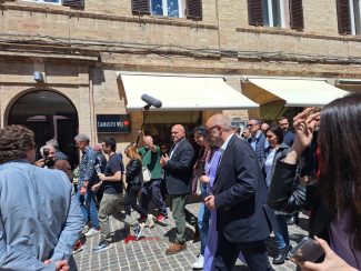 Ultimo passaggio prima dei saluti sul caso Liguria. Elly Schlein ha invitato a tenere la guardia alta.« Ogni forza politica deve fare questo sforzo anche al suo interno per tenere lontano interessi sbagliati e di malaffare. – ha concluso – E’ certamente molto grave il quadro che è emerso dalle indagini della magistratura in Liguria. E questo ci ha spinto, pur da garantisti e ancor prima di una sentenza che chiarirà le responsabilità penali individuali, a dire che è assolutamente necessario d’opportuno che vi siano le dimissioni del presidente della regione Toti perché la Liguria non merita di rimanere appesa al prosieguo di queste vicende giudiziarie». Ingente il dispiegamento di forze dell’ordine, tra polizia e carabinieri, che ha blindato Corso Mazzini durante la permanenza della deputata ad Osimo.