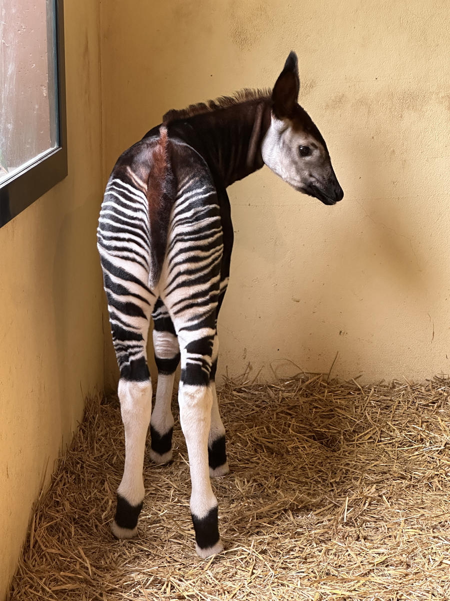 Vittoria, la cucciola di okapi venuta alla luce nel Parco Zoo Falconara lo scorso marzo, è finalmente uscita dalla stalla e sta iniziando ad esplorare l’area esterna del reparto.