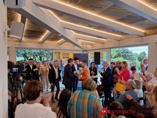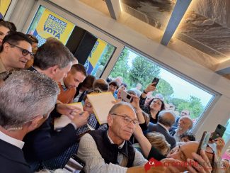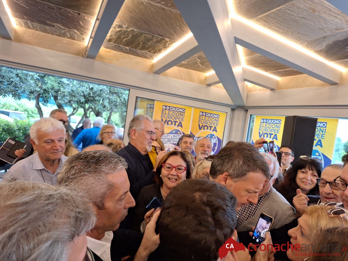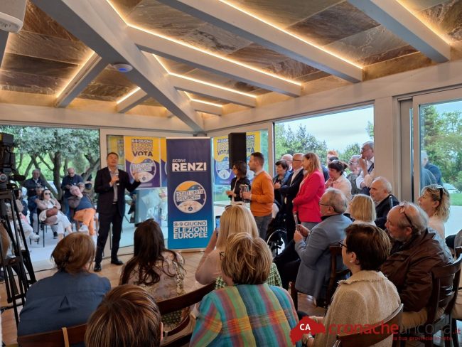 «Sono qui in prima fila a dire che ho un sogno iniziato 12 anni: se vengo eletto vado volentieri in Europa. – ha ribadito – Lo faccio perché rappresento una comunità di sognatori, persone credibili e capaci. Questa volta siamo dalla parte degli ideali» ha spronato i suoi, riuniti a Villa Battibecco di via Villa Costantina, «un posto perfetto per me» ha scherzato arrivando accolto da un numero pubblico intorno alle 16.40, dopo la visita alla Basilica della Santa Casa. Ad accogliere l’ex premier gli stati generali marchigiani di Iv e molti candidati alle Comunali: da Fabiola Caprari, consigliera comunale di Montemarciano e coordinatrice regionale del partito, ai segretari provinciali di Ancona e Macerata, Enrico Ciarimboli (sindaco di Morro d’Alba) e Fabiola Santini; Piergiorgio Carrescia, componente dell’assemblea nazionale di Iv, i consiglieri comunali Massimo Mandarano (Ancona), Ulderico Orazi (Macerata), Camilla Del Prete (Potenza Picena) Matteo Bitti (Chiaravalle), i sindaci uscenti Franco Capponi (Treia) e Mariano Calamita (Appignano), Matteo Palma di Urbino.