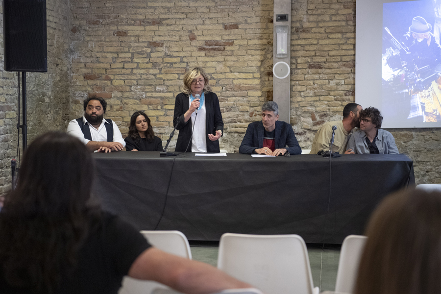 Un momento della conferenza stampa di presentazione di “Lo chiamava rock and roll”, la pellicola di Saverio Smeriglio (al centro)
