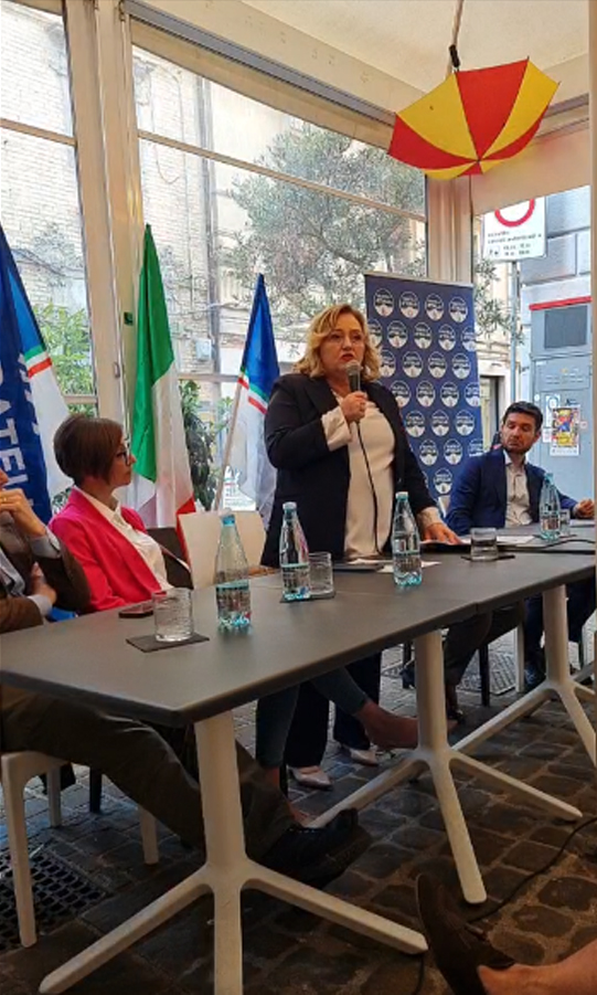 La parlamentare ha quindi rammentato che il governo ha stanziato in bilancio 134 miliardi di euro per la Sanità. «Il ministro Schillaci sta lavorando per togliere il tetto nell’assunzione del personale nell’ospedale che vige da più vent’anni. Oggi le cooperative cooperative dei ‘gettonisti’ costano più dei medici assunti in organico. Poi c’è tutto uno studio sulle liste d’attesa, uno dei problemi sedimentati in anni e anni di mancanza di programmazione. Al Ministero all’Economia, io in particolare poi sto lavorando con l’avallo di Palazzo Chigi alla valorizzazione dei beni pubblici immobiliari e su questo c’è una possibilità enorme di lavoro in ogni territorio per poter valorizzare i nostri beni pubblici nella direzione di creare nuove case per le giovani coppe, e senior housing o senior living per ricostruire con servizi le comunità per gli anziani. Sull’Economia sociale il nostro impegno è rivolto alle associazioni e fondazioni del Terzo Settore per farlo diventare un modello italiano da portare in Europa. Questi ultimi due temi saranno importanti anche per le realtà locali». E qui ha lanciato la volata a Carlo Ciccioli «che in questa tornata elettorale ha la possibilità reale di essere eletto a Strasburgo per completare un filiera istituzionale a vantaggio di un comunità che sta lavorando per una visione partendo da diversi livelli, dal singolo territorio fino all’Europa» ha detto