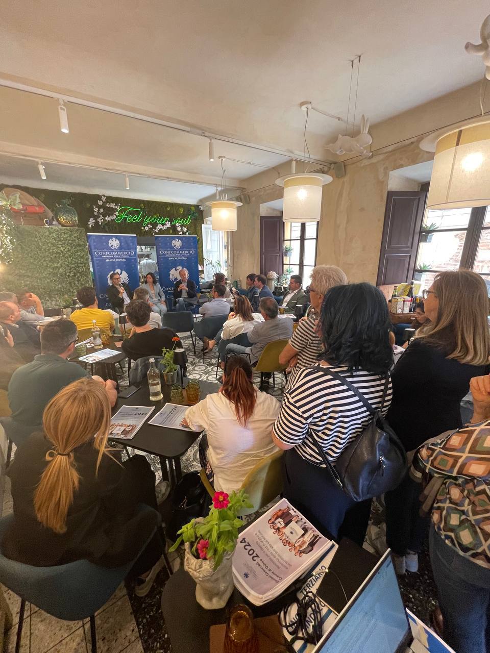 Centri commerciali naturali, viabilità, identità turistica e culturale di Osimo, rapporto tra amministrazione comunale e comparto del commercio. Si è approfondito il tema del rilancio economico-commerciale di Osimo e del suo territorio nell’incontro organizzato questa mattina da Confcommercio Marche Centrali con i tre candidati sindaco alle Amministrative di sabato 8 e domenica 9 giugno. Sandro Antonelli (coalizione civica), Michela Glorio (centrosinistra) e Francesco Pirani (Liste civiche-FdI) sono stati ospiti, nei locali del Caffè della Piazza, del Consiglio Direttivo dell’Alta Val Musone Confcommercio Marche Centrali guidato dal presidente Iosilito Gioacchini che, per l’occasione, ha presentato il ‘Manifesto per il rilancio economico della città di Osimo e del territorio dell’Alta Val Musone’.