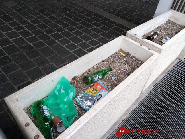 Almeno a giudicare dalle bottiglie di alcolici, lattine varie e bicchierini da caffè provenienti dai distributori automatici e seminati sull’asfalto, incastrati tra i braccioli delle panchine, buttati alle aiuole e ovunque capiti, insieme all’immondizia che spesso viene appoggiata sui cestini dei rifiuti a mo’ di ‘montagnetta’ anche quando a due passi c’è Igenio che, in via don Bosco, a dirla tutta si è trasformato in un orinatoio stile Oktoberfest.