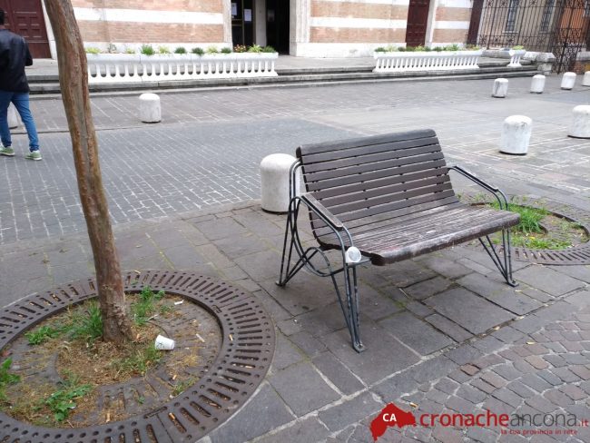 Bicchierini da caffè, infilzati nei braccioli delle panchine di corso Carlo Alberto
