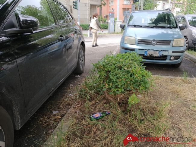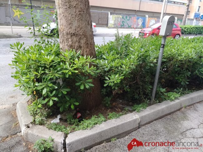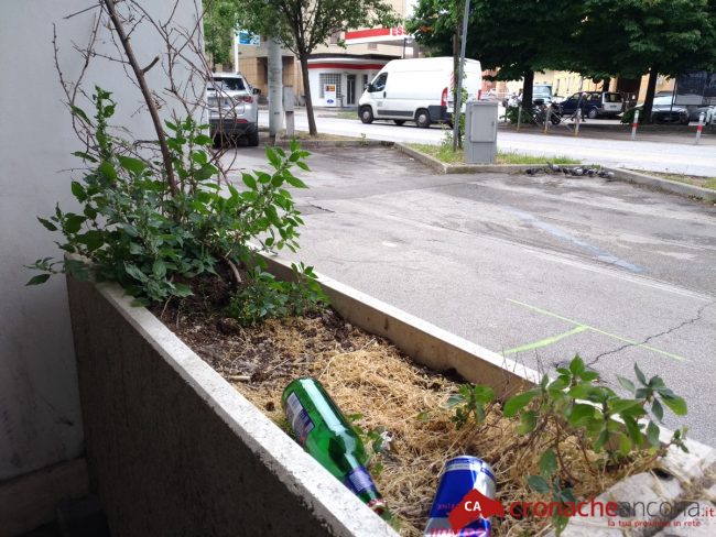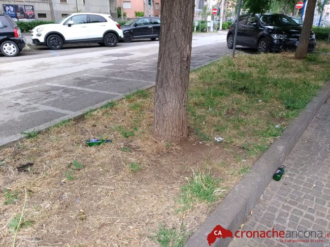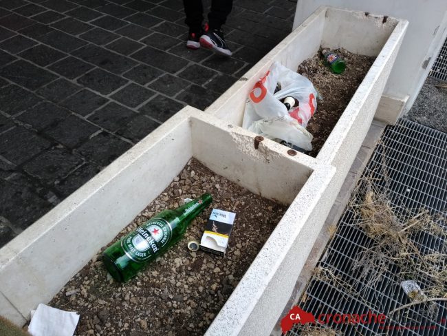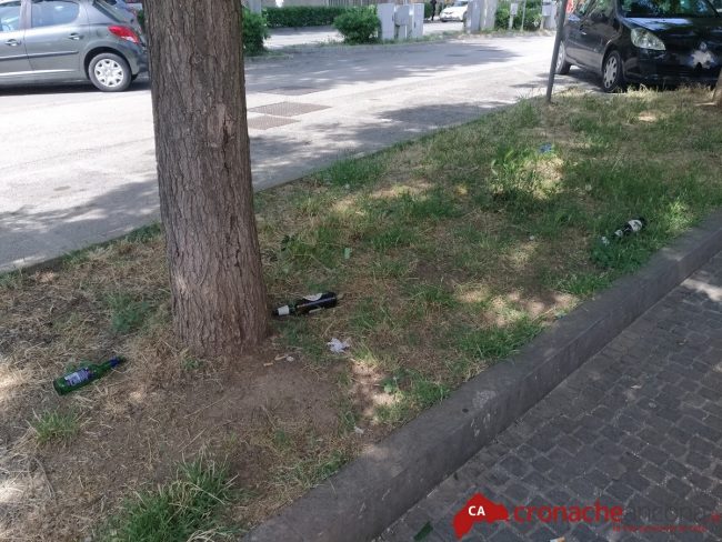 Bottiglie di birra nelle aiuole di via Giordano Bruno