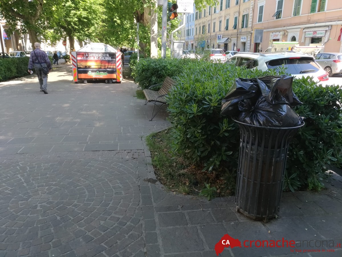 Sacchi della spazzatura, a pochi passi da Igenio, buttati nei cestini dei rifiuti di corso Carlo Alberto