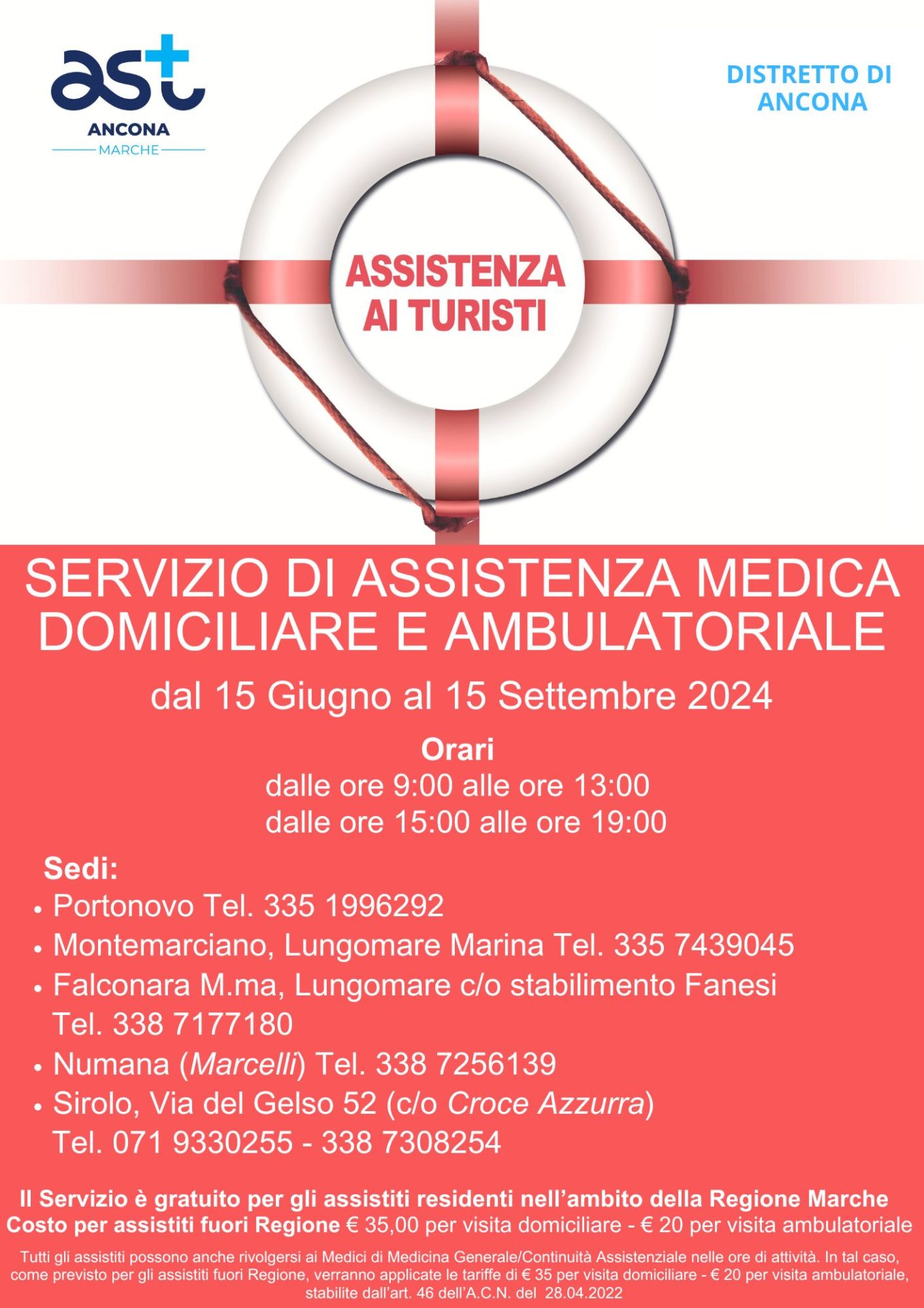 Al via come tutti gli anni il Servizio di Guardia Medica Turistica nei Distretti di Ancona e Senigallia. L’Azienda Sanitaria Territoriale rende noto che il servizio sarà garantito dal 15 giugno al 15 settembre.
