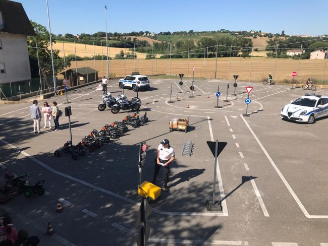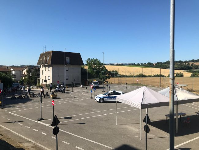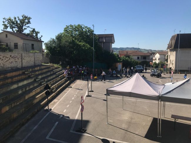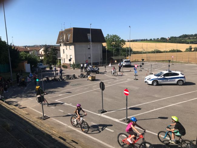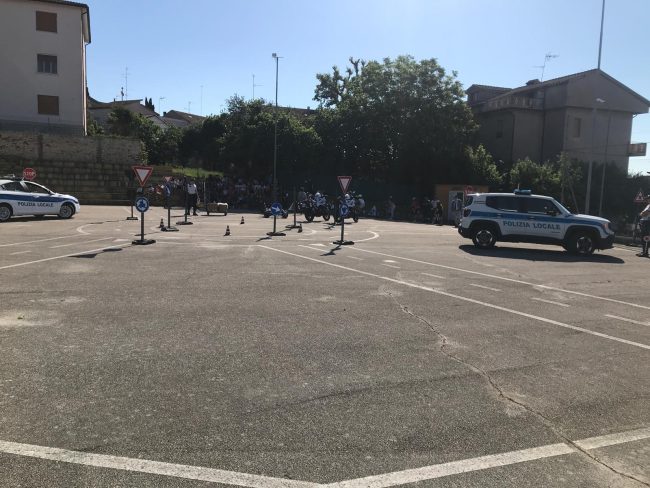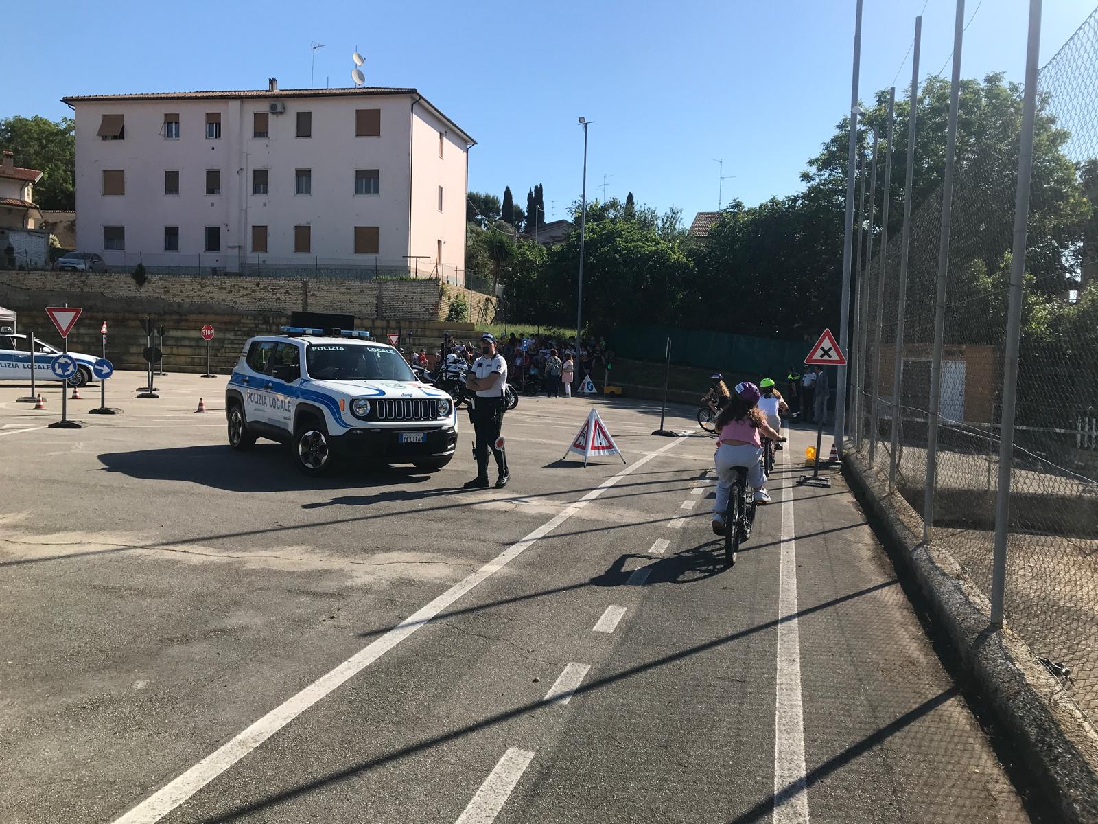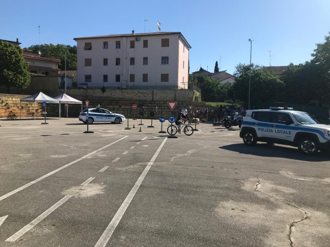 Dopo la prova di abilità con bici e macchine a pedali nel tracciato accuratamente predisposto con tanto di segnaletica orizzontale, verticale e luminosa presso la pista ‘Michele Scarponi’ in località Campanari, gli alunni delle classi quinte hanno ricevuto la ‘mini-patente’, una card nominativa del tutto simile all’originale. «I ragazzi hanno entusiasticamente affrontato il percorso formativo e le relative prove di esame interloquendo attivamente con gli agenti Roberto Olivieri e Luca Paccapeli, sviluppando un vero e proprio rapporto di fiducia e di amicizia che li ha portati a vedere negli uomini in uniforme non dei freddi censori ma una sorta di ‘fratelli maggiori’ in grado di accompagnarli in sicurezza nel difficile percorso, talvolta irto di insidie, che sempre più oggigiorno è rappresentato dall’ambiente urbano», ha detto il comandante Paolo Tondini, formulando un ringraziamento al gruppo comunale di Protezione civile ed alla Camst che ha offerto una gradita ricreazione.