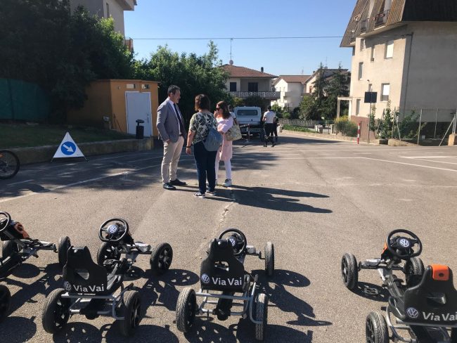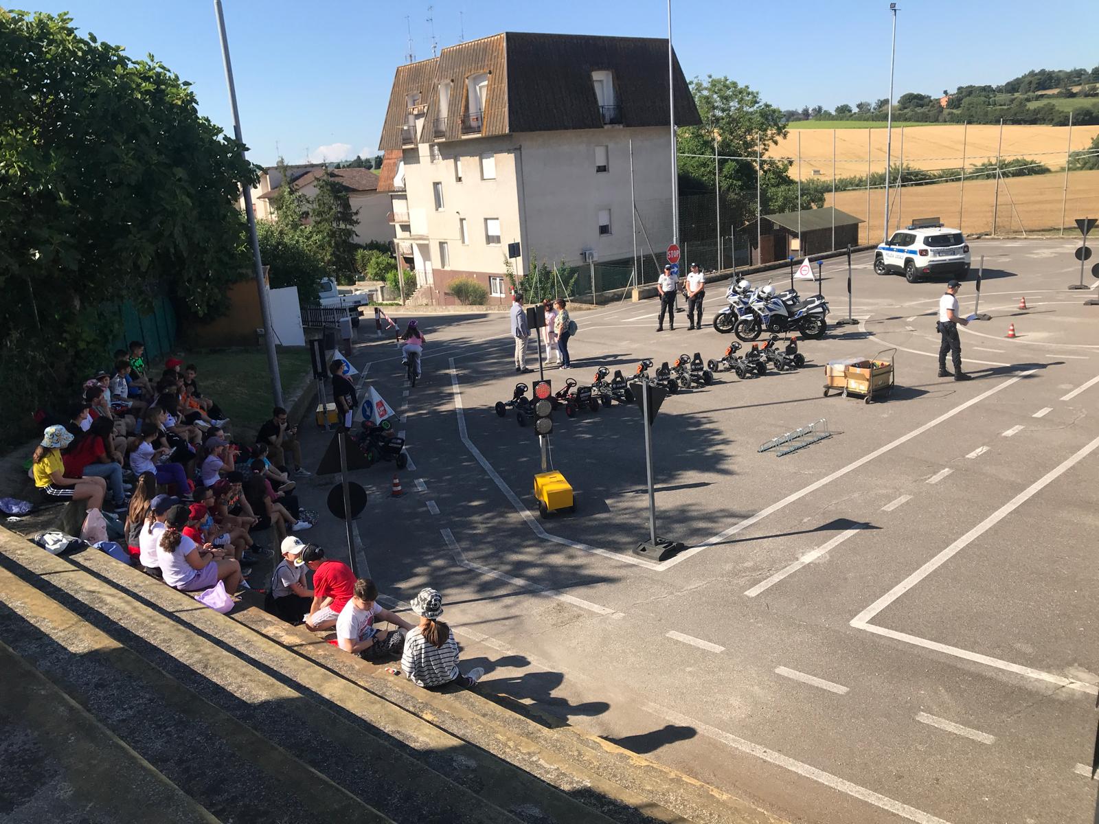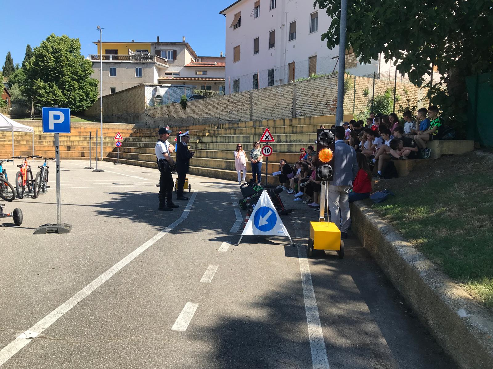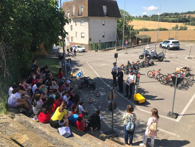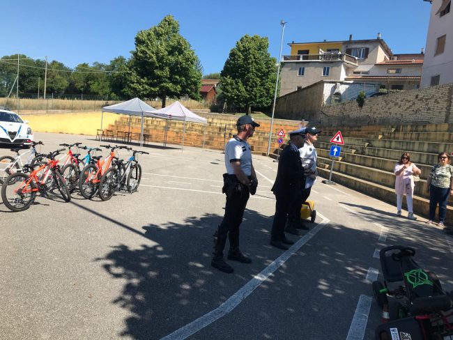 Dopo la prova di abilità con bici e macchine a pedali nel tracciato accuratamente predisposto con tanto di segnaletica orizzontale, verticale e luminosa presso la pista ‘Michele Scarponi’ in località Campanari, gli alunni delle classi quinte hanno ricevuto la ‘mini-patente’, una card nominativa del tutto simile all’originale. «I ragazzi hanno entusiasticamente affrontato il percorso formativo e le relative prove di esame interloquendo attivamente con gli agenti Roberto Olivieri e Luca Paccapeli, sviluppando un vero e proprio rapporto di fiducia e di amicizia che li ha portati a vedere negli uomini in uniforme non dei freddi censori ma una sorta di ‘fratelli maggiori’ in grado di accompagnarli in sicurezza nel difficile percorso, talvolta irto di insidie, che sempre più oggigiorno è rappresentato dall’ambiente urbano», ha detto il comandante Paolo Tondini, formulando un ringraziamento al gruppo comunale di Protezione civile ed alla Camst che ha offerto una gradita ricreazione.