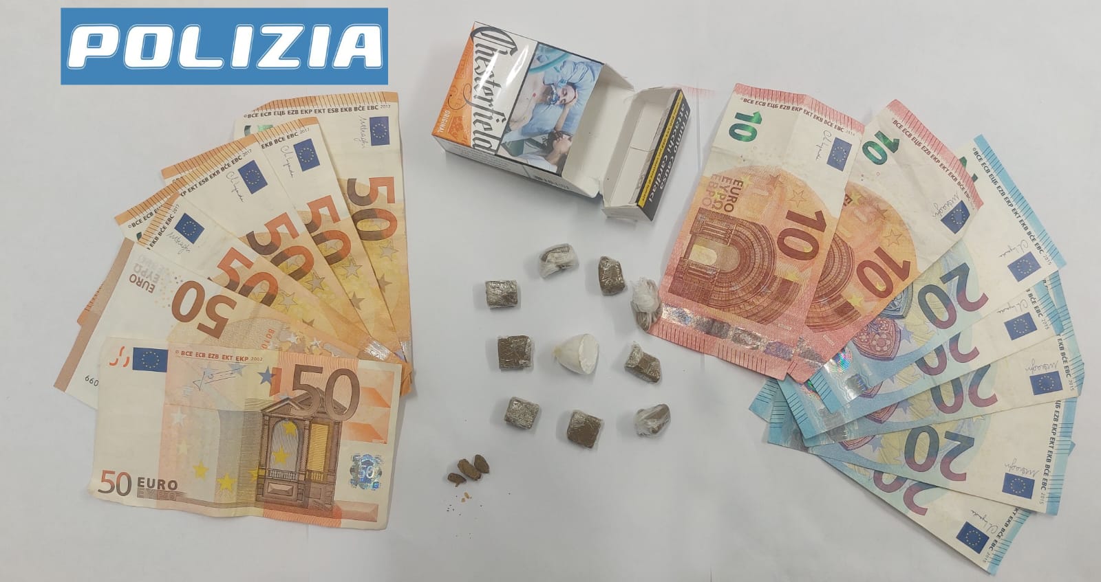 Accompagnato al Commissariato, all’interno del pacchetto di sigarette sono state trovate 9 dosi di hashish per un peso complessivo di 7,66 grammi e una dose solidificata di cocaina da 3 grammi.