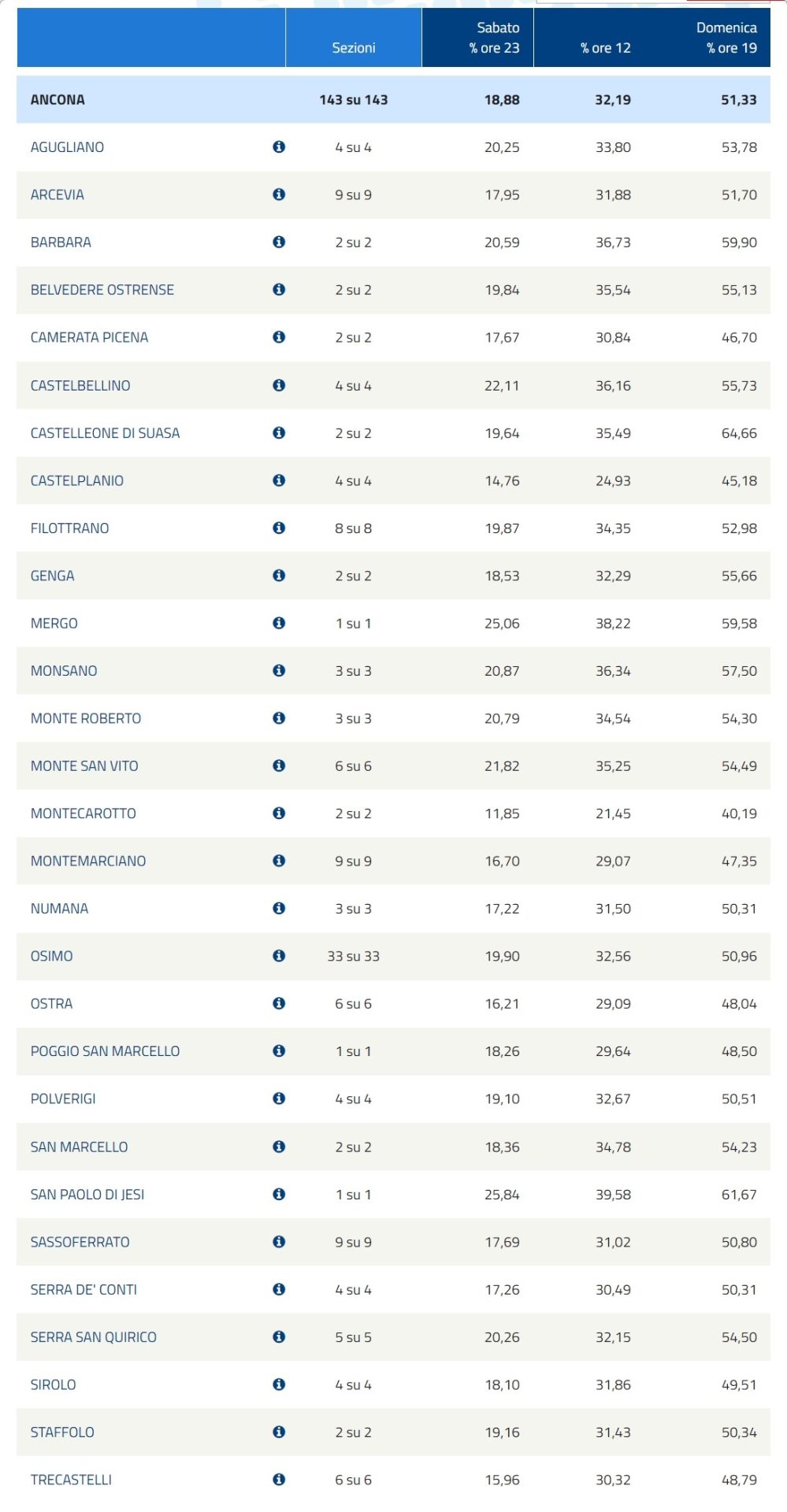 La provincia dorica viene superata, per affluenza, da quelle di Ascoli e Pesaro Urbino.