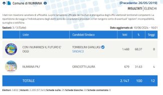 Gianluigi Tombolini è stato confermato dai propri concittadini sindaco di Numana. Già in carica da 10 anni, il segretario provinciale di Forza Italia attraverso la lista ‘Con i numanesi il futuro è oggi’ ha ottenuto 1.468 voti, pari al 68,37% di quelli totali. La sua sfidante Laura Graciotti, sostenuta dal Partito Democratico, con i suoi 679 voti non è andata oltre il 31,63%.