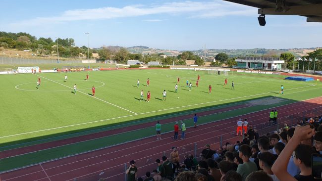 Al 19′ Falteri prova il rasoterra dalla sinistra ma la sua conclusione si spegne sul fondo. I toscani cercano di sfondare la linea difensiva del Castelfidardo, che tiene e le due squadre lottano su ogni pallone. Minuto 29, Rosi ci prova dalla distanza ma il suo tiro è innocuo, stesso esito per la conclusione di Lunghi. Al 36′ Fabbri imbecca Braconi che viene anticipato sotto porta all’ultimo, sul ribaltamento di fronte Kouassi crea scompiglio nell’area di rigore fidardense non riuscendo a trovare però la conclusione. I fisarmonicisti quando attaccano sono sempre pericolosi come al 43′ quando Fabbri chiama Brunelli all’intervento per bloccare la sua conclusione dalla distanza. Agli sgoccioli del terzo minuto di recupero Nanapere avrebbe una ghiotta occasione per piazzare il tris ma non trova lo specchio di porta da buona posizione. Il Castelfidardo parte forte anche in avvio di ripresa con Nanapere che chiama Brunelli alla presa bassa. Al 53′ Falteri ci prova dalla distanza ma senza successo. Risponde al 60′ Nanapere che di testa impegna Brunelli. Episodio chiave al 64′ quando Cannoni viene espulso per un contrasto su Falteri, lasciando anzitempo i suoi in inferiorità numerica.