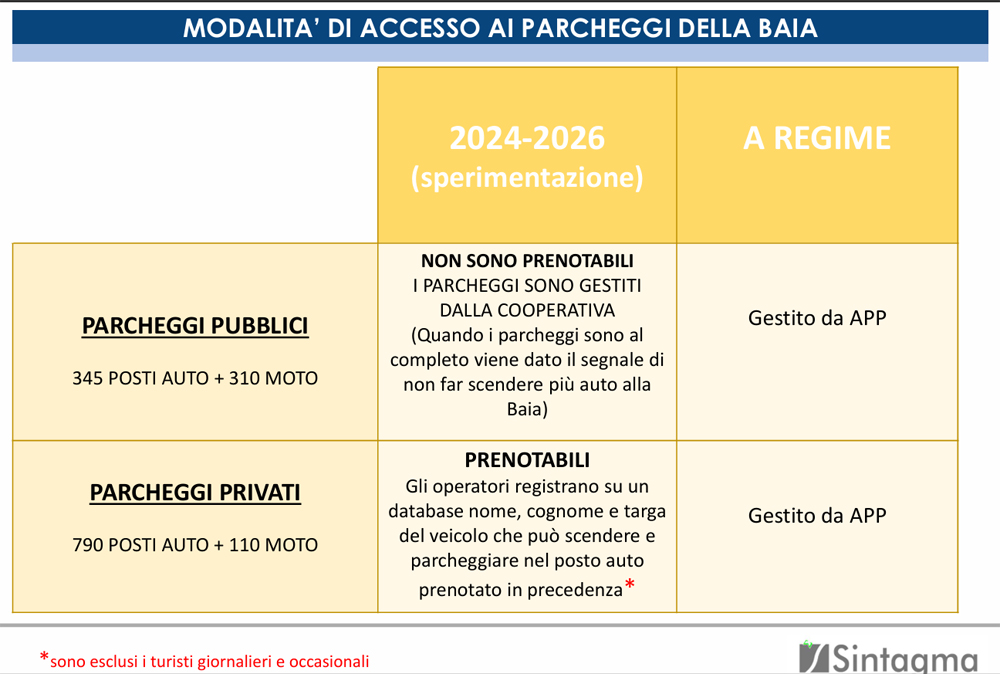 In questa prima fase considerata sperimentale sono stati previsti controlli allo svincolo con la Sp 1 in connessione con il riempimento dei parcheggi pubblici a valle e il potenziamento del trasporto pubblico dedicato alla baia anche per i quasi 400 operatori che vi lavorano. «Il controllo, effettuato da personale dell’attuale gestore dei servizi di Portonovo coordinato da personale di Ancona Servizi e con il supporto della Polizia locale, produrrà l’effetto di dirottare presso i parcheggi a monte i veicoli, sia pubblici che privati, che non hanno la disponibilità di uno stallo di sosta garantito a valle. – si legge nella delibera di giunta del 23 maggio scorso – In questo modo si intende eliminare l’accesso incontrollato ed il traffico “passivo” all’interno della baia, oltre a garantire gli standard di sicurezza richiesti nell’ambito dei Piani della Protezione Civile».