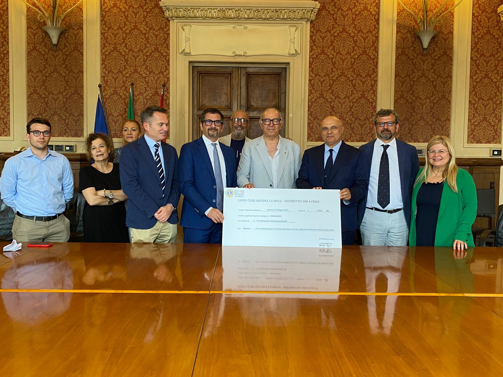 Il Lions Club Ancona La Mole di Ancona ha consegnato questa mattina in Comune la somma di 3.450 euro da utilizzare per acquisto di arredi ed altre necessità del Centro per la Terapia del Dolore e le Cure Palliative Pediatriche dell’Ospedale Salesi di Ancona. A ricevere l’assegno, nel corso di una conferenza stampa, è stato il dottor Simone Pizzi, Direttore del Centro, oltre che presidente del Consiglio Comunale di Ancona.