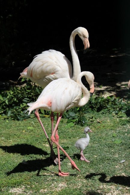 Cresce anche la colonia dei fenicotteri rosa (Phoenicopterus roseus) che, con l’arrivo di tre tenerissimi pulli, sale a 36 esemplari. I piccoli nascono con le piume grigie, cambieranno progressivamente colore nell’arco di 4-6 anni, diventando belli e slanciati come i loro genitori.