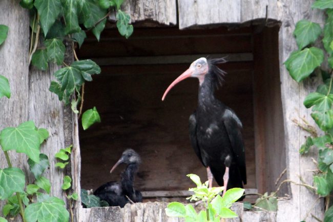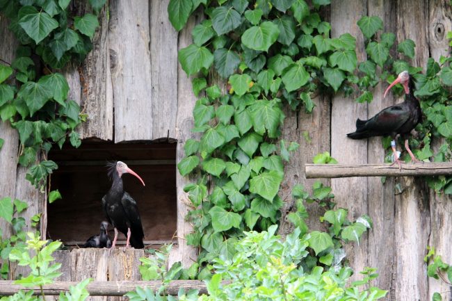 Lo zoo marchigiano festeggia anche il primo esemplare di ibis eremita (Geronticus eremita) nato nella struttura. Si tratta di un raro uccello migratore a rischio di estinzione caratterizzato da un lungo becco ricurvo, testa calva e piumaggio scuro con riflessi metallici blu, verdi e arancioni.