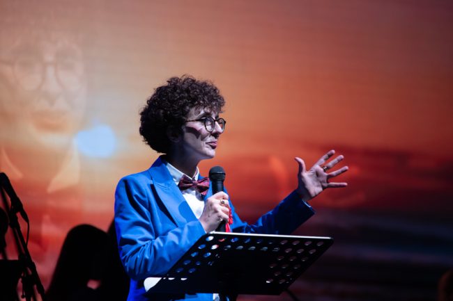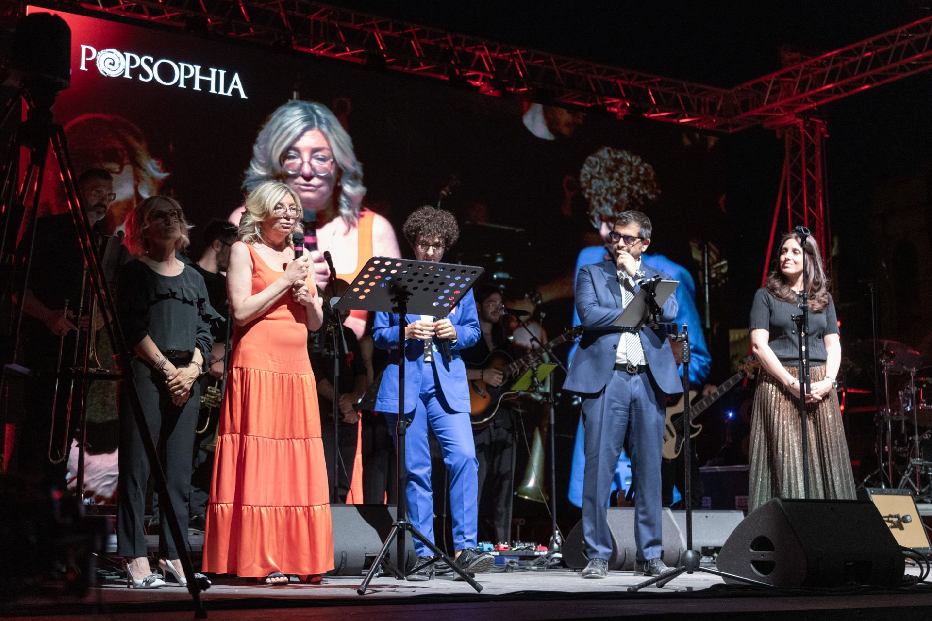 “Estate, filosofia del solstizio” è stato lo spettacolo inedito, ideato da Lucrezia Ercoli per enfatizzare la solennità dell’apertura impostando una narrazione che come un cerchio perfetto racconta la parabola di Popsophia ad Ancona. «Con Popsophia siamo arrivati qui nei giorni più corti dell’anno, il solstizio d’inverno a dicembre, il dies natalis. – ha detto – Stasera celebriamo la fine di quella parabola, il solstizio estivo, il rito di passaggio che segna un confine fra un prima ed un poi». Tutto lo show ha voluto proprio sottolineare i riti dedicati alla luce e al fuoco, alla purificazione, al chiarore del sole che nelle ore del solstizio vince sulle tenebre portando con sé la simbologia di fertilità, abbondanza, salvezza, ma anche il presagio della sua fine. Ad accompagnare Lucrezia Ercoli sul palco il filosofo Simone Regazzoni che ha riletto la filosofia partendo dall’ambiente marino, dall’acqua, da Talete a Eraclito, offrendo una chiave di lettura inedita di tutto il nostro stare al mondo, come surfisti fra le onde, galleggiando sulle terre emerse in cerca perenne di equilibrio. E in un gioco di rimandi le canzoni della Factory da “O sole mio” a “Onda su Onda” fino a Let the sunshine hanno suggellato l’inizio dell’estate anconetana.