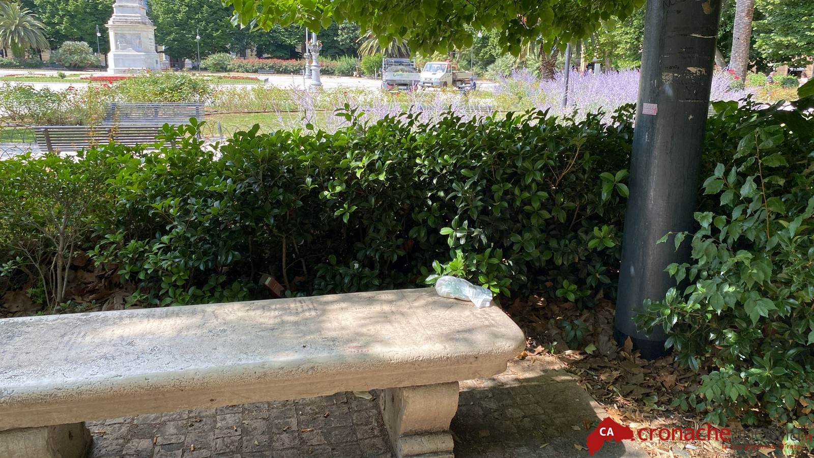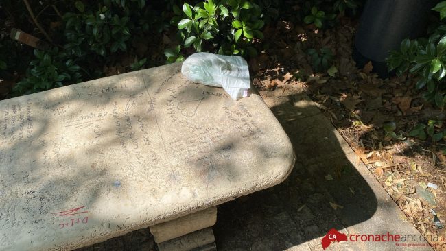 Dopo i pannolini smaltiti in strada lanciandoli dalla finestra di un palazzo di Largo Sarnano, al Piano; ecco quello smaltito su una panchina in piazza Cavour, in pieno centro storico.