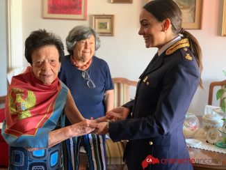 Questa mattina il Commissario Capo Daniela Iscaro, in rappresentanza del Questore di Ancona, Cesare Capocasa, unitamente al Presidente della Sezione dorica dell’A.N.P.S., Giovanni Aguzzi, le hanno fatto visita per consegnarle un importantissimo riconoscimento pervenuto dal Presidente Nazionale dell’Associazione della Polizia di Stato, Michele Paternoster motivato dalla “lunga ed ininterrotta militanza e l’alto senso di appartenenza al sodalizio, per il prezioso contributo e il meritorio impegno sempre generosamente offerti all’attività della Sezione di Ancona, volti alla crescita ed allo sviluppo dell’Associazione nel territorio”.