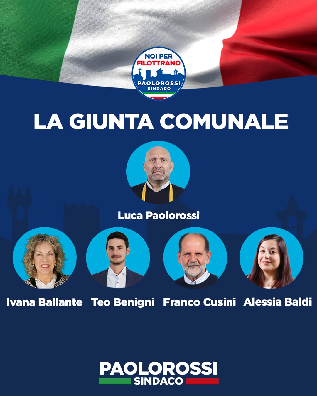 «Ho formato una giunta fatta di gente fidata e competente che sin da questa mattina si sono messi a lavorare per il paese. La vice sindaca Ivana Ballante ha tutta e tanta mia stima per le sue competenze, – aggiunge – i dipendenti comunali hanno fatto sempre un buon lavoro e so che non mi deluderanno. Ora ho bisogno di un po’ di tempo per mettere tutto in fila, gli altri hanno avuto 10 anni, io sono sindaco da poche ore, ai miei concittadini chiedo di avere un po’ di pazienza , ai miei collaboratori in Sartoria chiedo di impegnarsi più possibile soprattutto in questi primi momenti io cercherò di essere sempre presente e lucido , ai miei clienti chiedo scusa per qualche cambiamento di orario all’ultimo minuto, all’opposizione chiedo aiuto per amministrare insieme alla mia squadra questo paese che amo. Infine alla mia famiglia chiedo scusa, potevamo goderci un po’ di tempo insieme e invece faremo fatica anche a stare seduti a tavola negli stessi orari» conclude Luca Paolorossi.