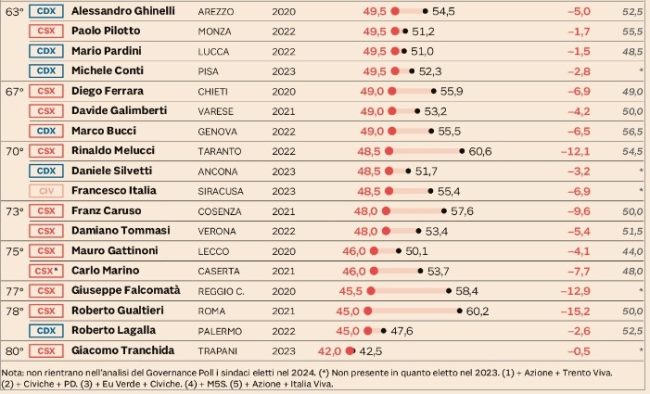 La classifica dei sindaci
