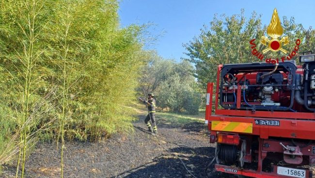 Intervento nel pomeriggio a Filottrano per un incendio di sterpaglie che ha coinvolto anche alcuni alberi di ulivo.