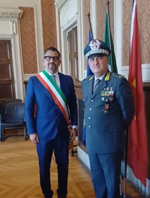 Visita di cortesia in Municipio, questa mattina, tra il nuovo comandante regionale Marche della Guardia di Finanza, generale Nicola Altiero e il sindaco Daniele Silvetti.