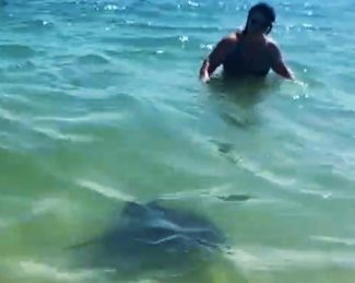 Una razza, un trigone di grosse dimensioni, è stata filmata oggi a Numana mentre nuotava vicino alle riva di fronte allo stabilimento 35 ‘Kontiki’ di Marcelli. Il video, spedito alla nostra redazione dal lettore Matteo Micheletti, è stato girato con lo smartphone intorno alle 13.28 da una ragazzina tra lo stupore e la meraviglia degli altri bagnanti che si erano tuffati in acqua proprio in quel momento. Le razze di solito preferiscono il mare profondo ma d’estate gli esemplari femmina lasciano i fondali e si avvicinano alla costa per far schiudere le uova che incubano all’interno del proprio corpo. Non sono pericolose anche se dispongono di un aculeo velenoso sulla coda e attaccano solo se si sentono minacciate.