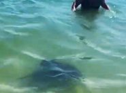 NUMANA – Il trigone di grosse dimensioni è stato filmato nel primo pomeriggio nello specchio di mare davanti allo stabilimento 35 ‘Kontiki’