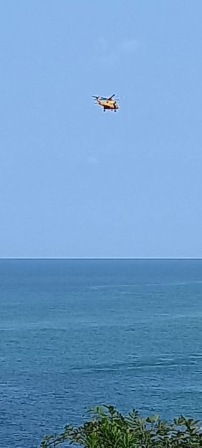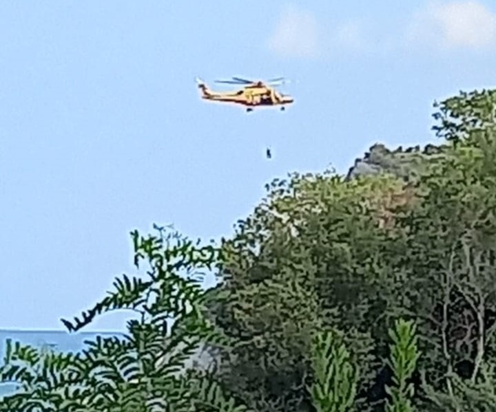 L’eliambulanza sulla falesia del Passetto con il medico che si sta calando con il verricello (Foto di Aristogitone Lantieri)