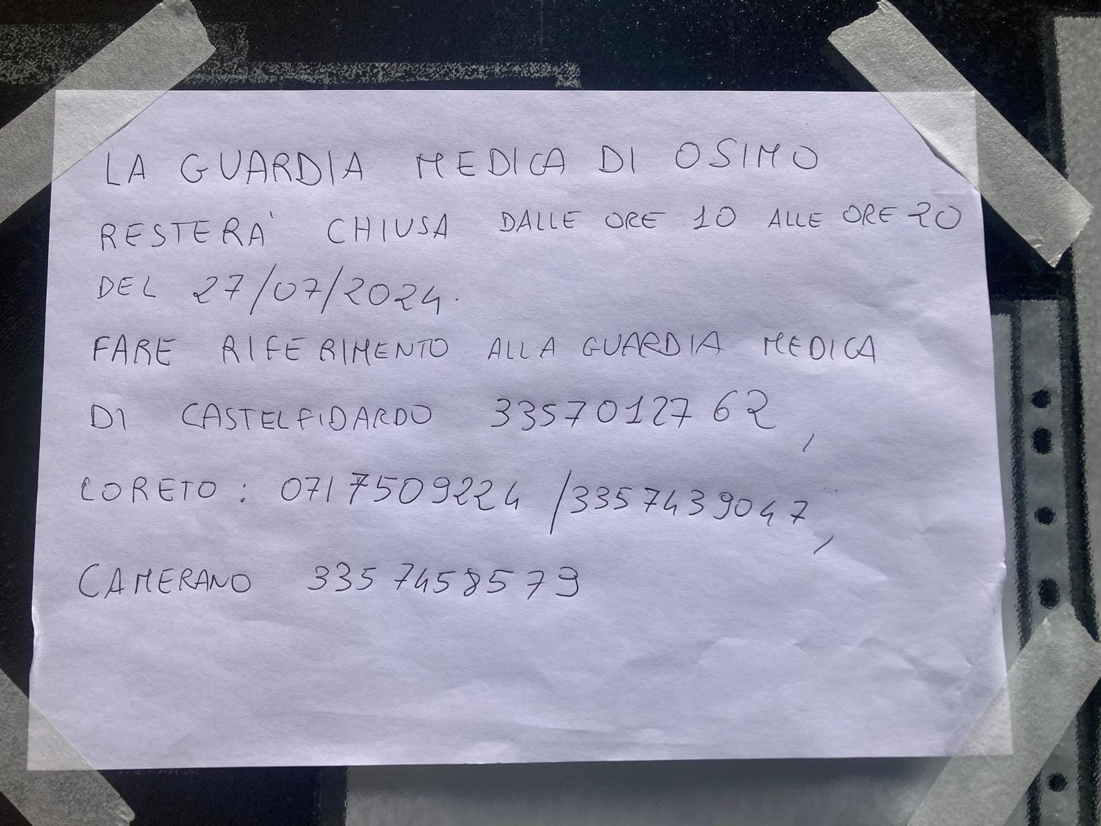 “Per la guardia medica di Osimo, rivolgersi a quella di Castelfidardo”