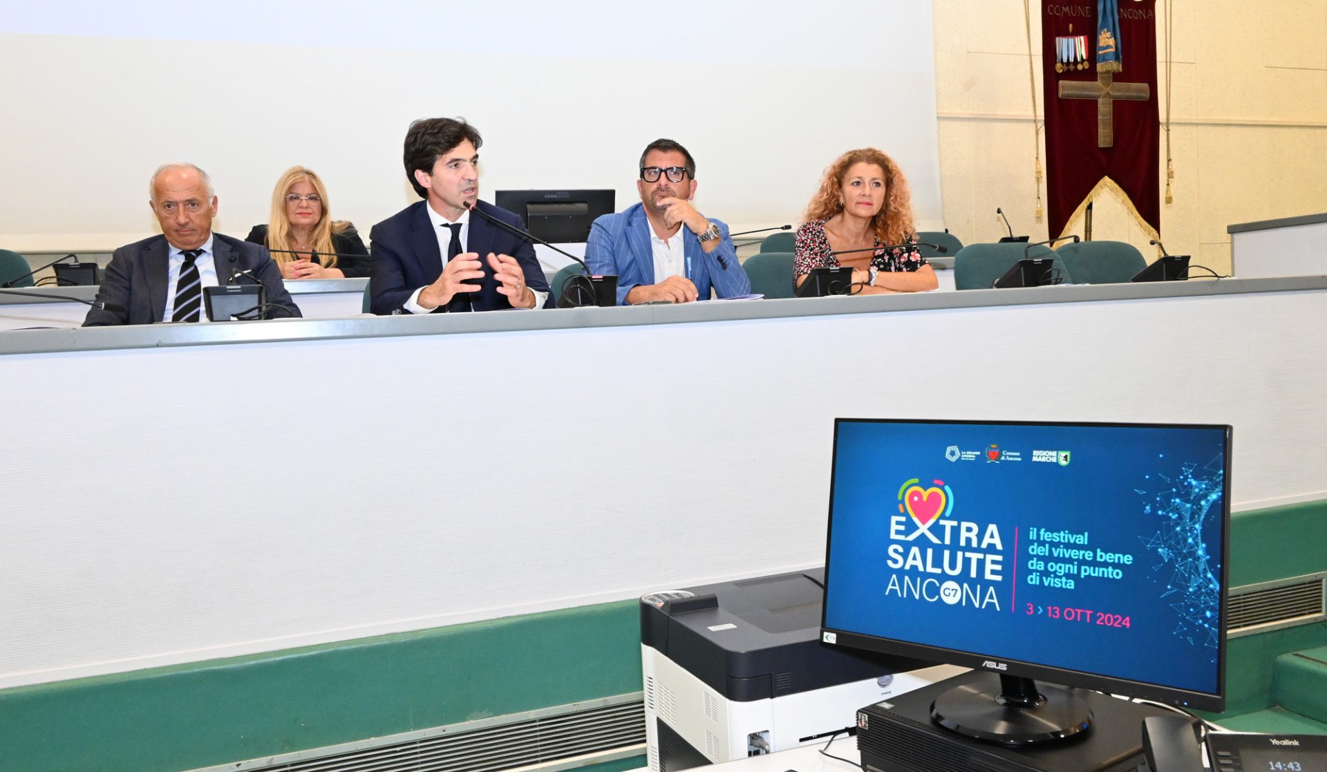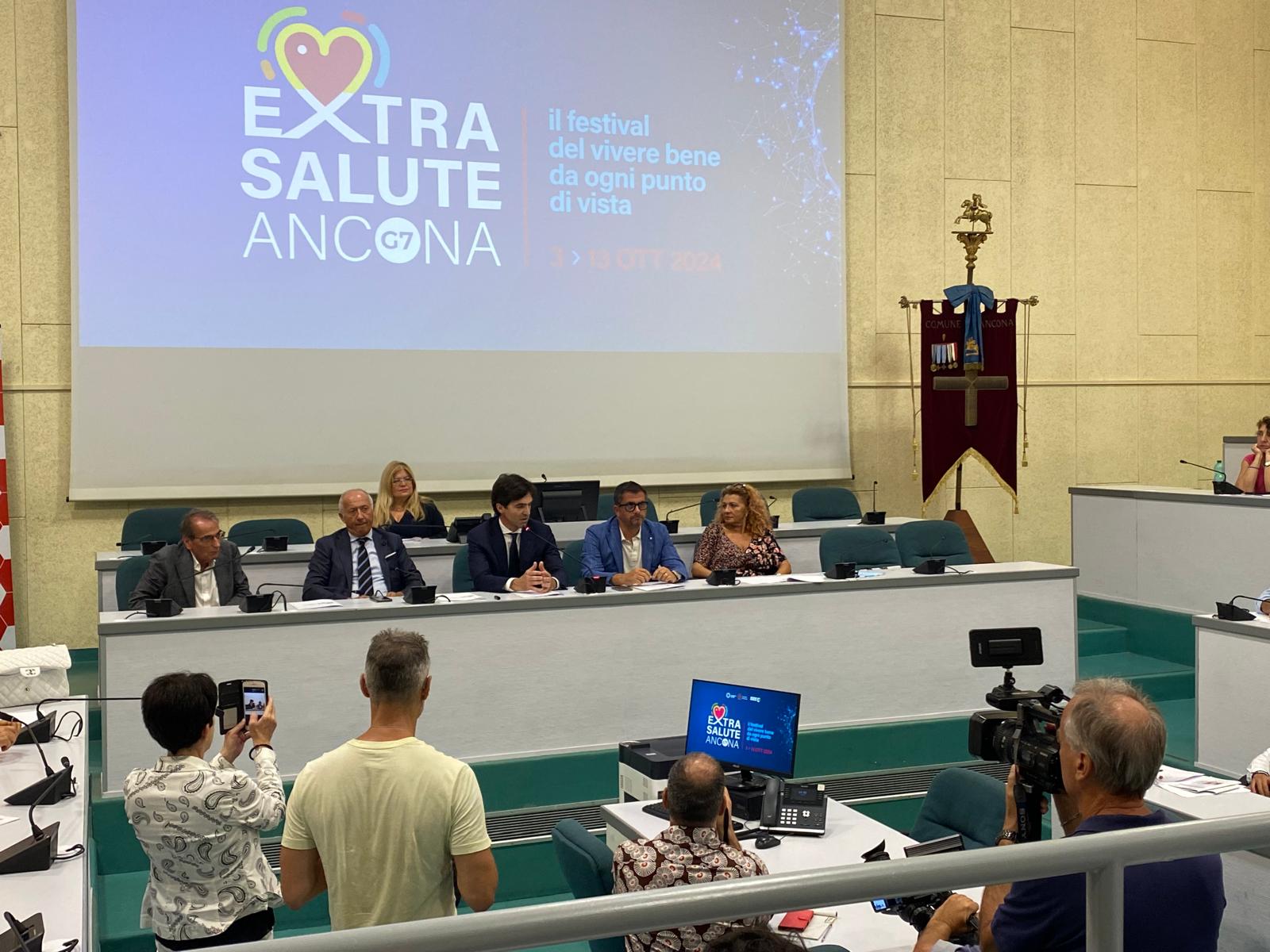 Ancona sarà al centro dell’attenzione mondiale dal 3 al 13 ottobre con l’organizzazione dell’Extra G7 Salute. Oltre 40 appuntamenti in tutta la città, realizzati dal Comune di Ancona in collaborazione con enti e associazioni del mondo della sanità saranno il palinsesto che, anteprima e corollario del G7 Salute in programma ad Ancona dal 9 all’11 ottobre, permetterà al capoluogo di regione di prendere parte a un’occasione unica per la città. Saranno dieci giorni di approfondimenti su tematiche che riguardano il sistema salute, dalle nuove emergenze, al mondo della prevenzione, fino ad arrivare agli stili di vita da adottare per un percorso di vita longevo. E ancora: alimentazione, malattie infettive, malattie rare, lotta all’Aids, genetica, benessere e animali da compagnia. Il programma dell’importante appuntamento di respiro internazionale che ospiterà i sette grandi della terra è stato presentato oggi pomeriggio nella sala consiliare di Palazzo del Popolo ad Ancona, dal governatore delle Marche, Francesco Acquaroli con l’assessore regionale alla Sanità, Filippo Saltamartini, e dal sindaco Daniele Silvetti con l’assessore ai Servizi Sociali e Sanità, Manuela Caucci.