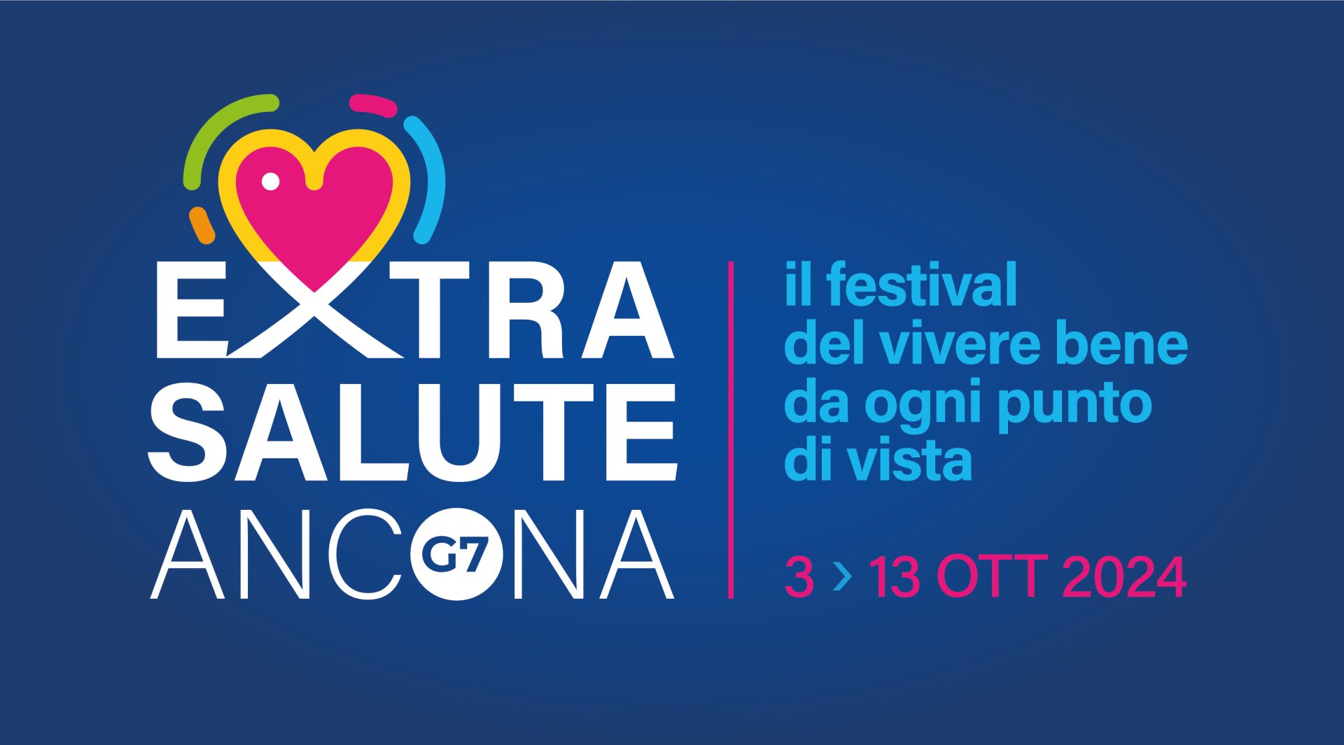 L’Extra G7 Salute si svolgerà da giovedì 3 a domenica 13 ottobre, ad esclusione delle giornate che vanno dal 9 all’11 ottobre in cui avranno luogo i lavori ministeriali. Gli approfondimenti si terranno in diverse location: Ridotto delle Muse, Loggia dei Mercanti, Museo Archeologico, Buon Pastore, sala del Consiglio comunale (sede centrale) e sede della Facoltà di Economia Giorgio Fuà, nella ex caserma Villarey di piazza Martelli (sala Auditorium). I talk saranno distribuiti il mattino dalle 9 alle 13 e il pomeriggio dalle 15 alle 19. In piazza Cavour saranno invece allestite postazioni mobili per dare modo alla cittadinanza di effettuare una serie di screening gratuiti. Il logo del festival Extrasalute Ancona, simboleggiato da un cuore colorato e pieno di energia, il cui prolo si allunga nella graca per disegnare la X di Extra, esprime, con emozione e positività, l’approccio multidisciplinare al tema della salute e del vivere bene che contraddistingue i differenti appuntamenti di questo festival. Extrasalute Ancona nasce infatti intorno all’evento di portata mondiale del G7 Salute, incontro istituzionale che vedrà riuniti ad Ancona i Ministri della Salute dei paesi G7, per offrire ai cittadini momenti di divulgazione, approfondimenti e spettacolo legati al vivere bene e in salute da ogni punto di vista. Il logo è stato ideato e realizzato da Advcreativi di Ancona. Gli appuntamenti in programma sono tutti ad ingresso gratuito senza prenotazione.