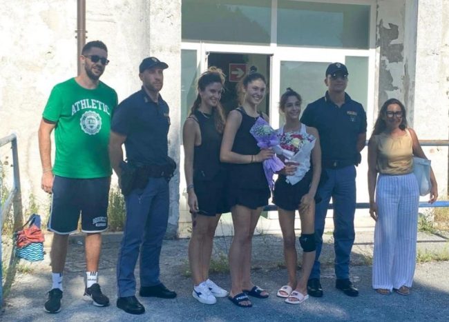 La campionessa è stata attesa dalla Volante del Commissariato di Fabriano all’uscita dal PalaCesari, struttura sportiva dedicata alla ginnastica ritmica, al termine degli allenamenti pomeridiani del 30 luglio. Con grande sorpresa, nel sentire la sirena bitonale, ha guadagnato l’uscita e avvicinato i poliziotti dai quali ha ricevuto un omaggio floreale, un bouquet con al centro una rosa color cremisi, colore delle Fiamme Oro, sorrisi e incoraggiamenti per l’importante avventura olimpionica che si appresta ad affrontare.
