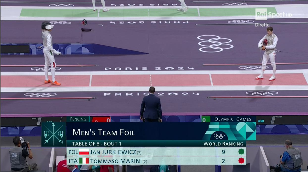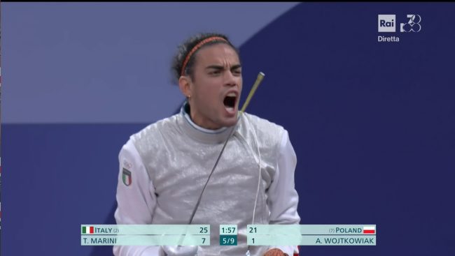 E’ stata una giornata intensa in pedana al Gran Palais per il poliziotto anconetano Tommaso Marini e i compagni di squadra Filippo Macchi, Guillaume Bianchi e Alessio Foconi (riserva). Verso le 13 insieme hanno portato l’Italia in semifinale e in zona medaglie dopo aver battuto la Polonia per 45-39 in una competizione non facile dopo una rimonta.
