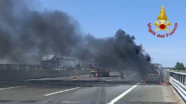 Auto a fuoco in A14: