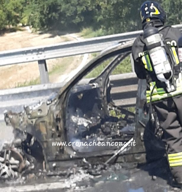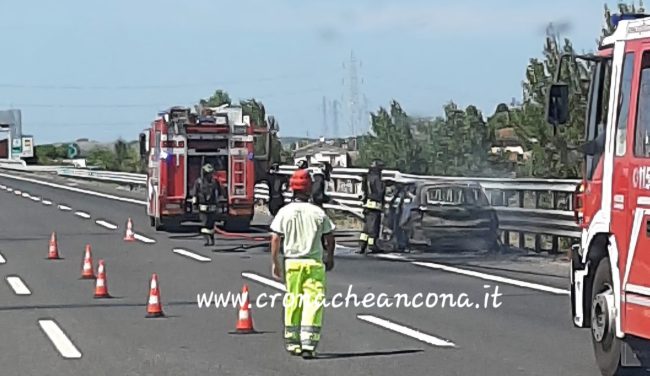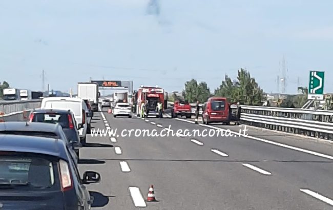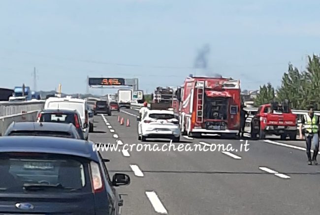 FIAMME - E' successo lungo il tratto tra Ancona Nord e Montemarciano, direzione Bologna. Sul posto i vigili del fuoco e la Polstrada