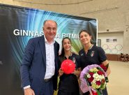 FABRIANO – Fiori e applausi questa mattina per le due campionesse di ginnastica ritmica. Il sindaco Daniela Ghergo ha rilanciato il progetto «di realizzare una casa della ritmica adeguata al valore delle nostre atlete stellari. Spero che ci sia anche la Regione a supportarci nel sogno»