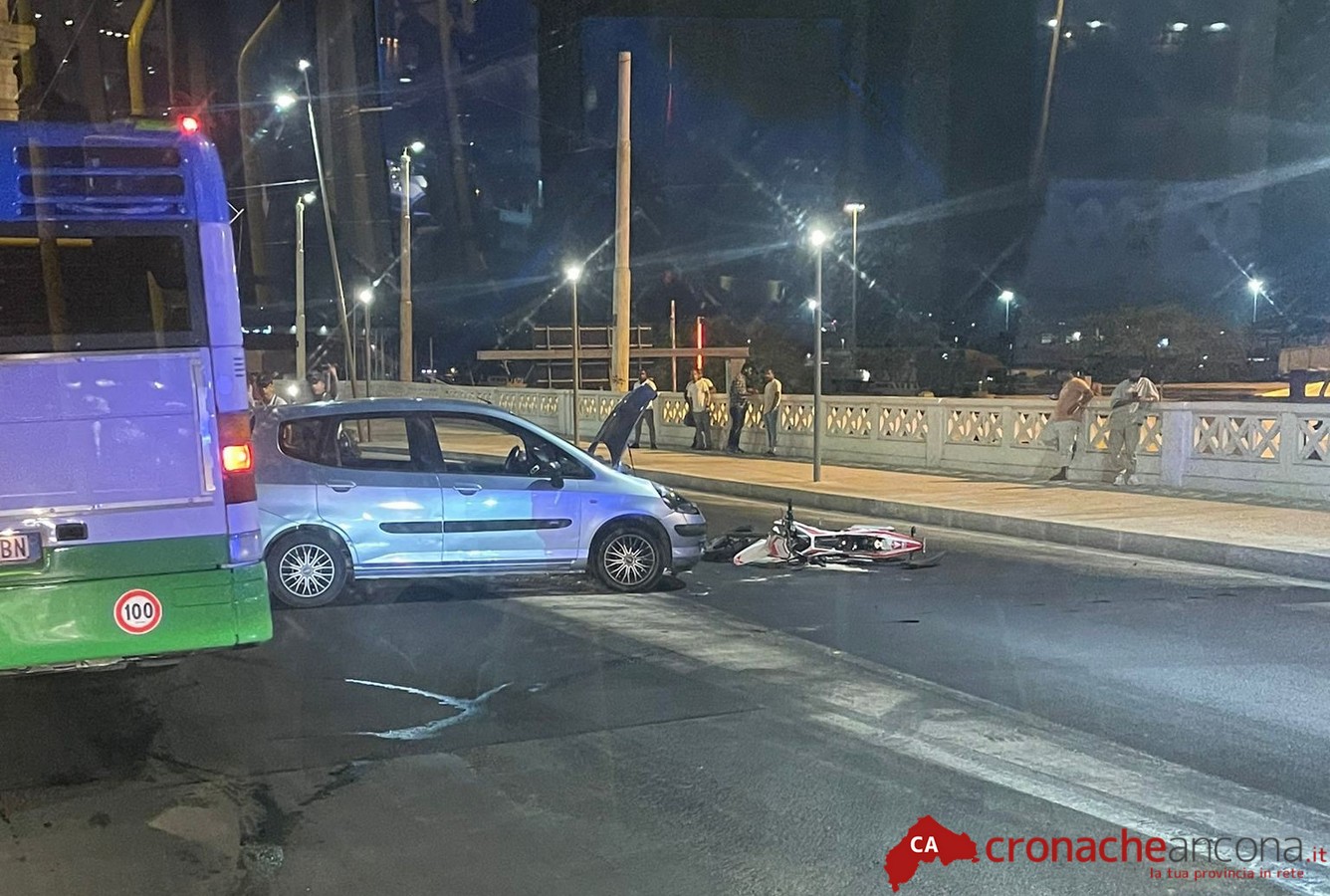 Il giovane centauro, medicato sul luogo, è stato successivamente accompagnato con un codice di media gravità al pronto soccorso di Torrette. Le sue condizioni non sono fortunatamente preoccupanti.