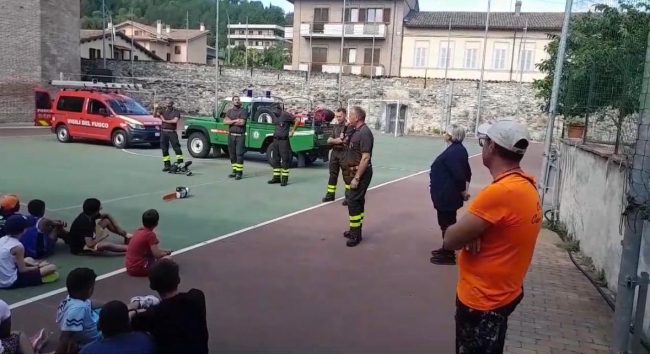 Grande partecipazione e interesse ha riscosso la straordinaria visita del Corpo dei vigili del fuoco di Fabriano che hanno trascorso una mattinata insieme ai bambini e ai ragazzi del Centro Estivo della parrocchia di San Nicolò.